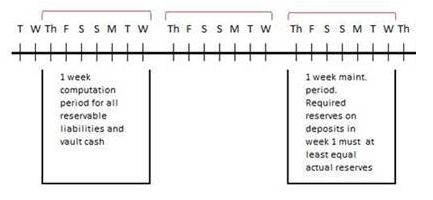 La Fed définit la méthode que les banques sont tenues d’utiliser pour calculer les dépôts et les réserves obligatoires. La période pendant laquelle les réserves quotidiennes moyennes d’une institution de dépôt doivent atteindre ou dépasser ses réserves obligatoires déterminées est appelée période de constitution des réserves. La période au cours de laquelle les dépôts sur lesquels les réserves sont fondées et sont mesuréees est la période de calcul des réserves. La méthode de comptabilisation des réserves a été modifiée en 1968 et de nouveau en 1984, mais aucun des deux changements n’a modifié le rôle de la Fed sur le marché des réserves.