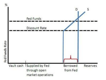 Par exemple, s’il y a une pénurie de réserves dans le système bancaire, pour toute banque individuelle, cette pénurie est comptabilisée comme un prêt à découvert (prêt à guichet d’escompte) de la BC. C’est-à-dire, en premier lieu, que le déficit d’une banque dans son compte de réserve BC est comptabilisé comme un prêt de la BC. Et si la BC fixe le taux de ces prêts au taux directeur, il n’est pas nécessaire de prendre les mesures supplémentaires (telles que «ajouter des réserves» via des accords de rachat ou des achats purs et simples de titres du Trésor) suggérées dans le modèle standard. Ce n’est que lorsque la BC ajoute ce qu’on appelle un « taux de pénalité » à ce type d’emprunt, ou si un stigmate[2] est associé aux prêts de la BC, que les banques tentent alors d’emprunter sur le marché interbancaire afin de remplacer les prêts à prix plus élevé de la BC par des prêts à bas prix d’autres banques. En logique, la banque serait disposée à payer plus que le taux directeur, mais moins que le taux d’escompte (NdT : discount rate) plus le montant par lequel elle évalue toute stigmatisation. Dans le cas américain, par exemple, lorsque la Fed observe que le taux des fonds fédéraux s’échange plus haut que son objectif de taux directeur, elle prend alors des mesures pour rendre les réserves disponibles à un prix inférieur pour ramener le taux des fonds fédéraux à son taux directeur.