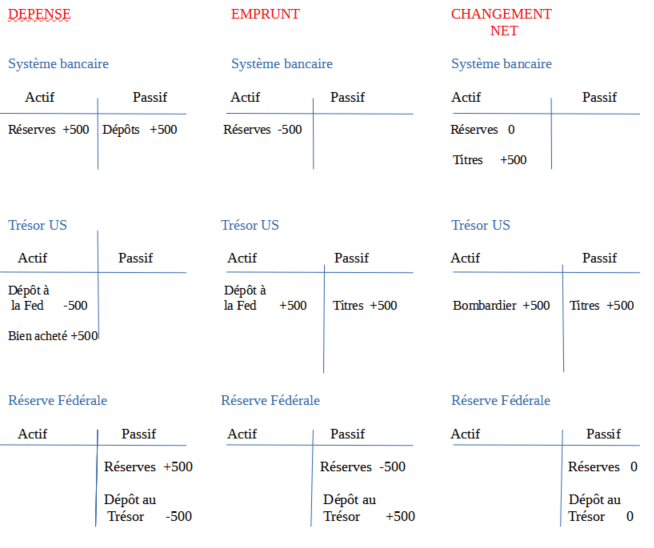 L’État fédéral, par contre, est en mesure de dépenser d’abord un montant pratiquement illimité, d’ajouter des réserves au système bancaire, puis d’emprunter, s’il souhaite procéder à un « nettoyage » des réserves.