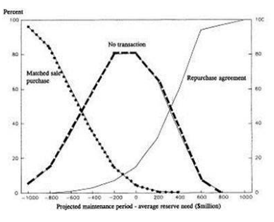 Depuis 1969, les opérations de pension sont devenues une importante source de fonds pour les banques. Le volume des RPs dépasse 140 milliards de dollars. L’intérêt sur les RPs n’est pas déterminé par l’intérêt sur les bons du Trésor utilisés en garantie, mais plutôt par l’intérêt sur le marché des pensions qui est étroitement lié au taux des fonds fédéraux. Étant donné que les pensions de titres sont garanties et que les fonds fédéraux ne le sont pas, le taux des pensions de titres est généralement un peu plus bas que le taux des fonds fédéraux.