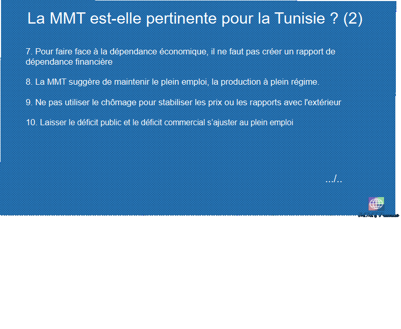 Alors maintenant je vais essayer de répondre à la question que Ghazi nous pose, s’agissant précisément du thème de notre échange, à savoir si la MMT est pertinente pour la Tunisie.