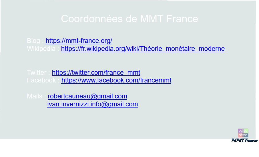 Ivan et moi, nous sommes les membres de MMT France, une organisation qui, pour l’instant, se réduit à un blog sur le web, et qui se propose de donner accès à la MMT aux francophones, en réalisant des documents et des articles en langue française.