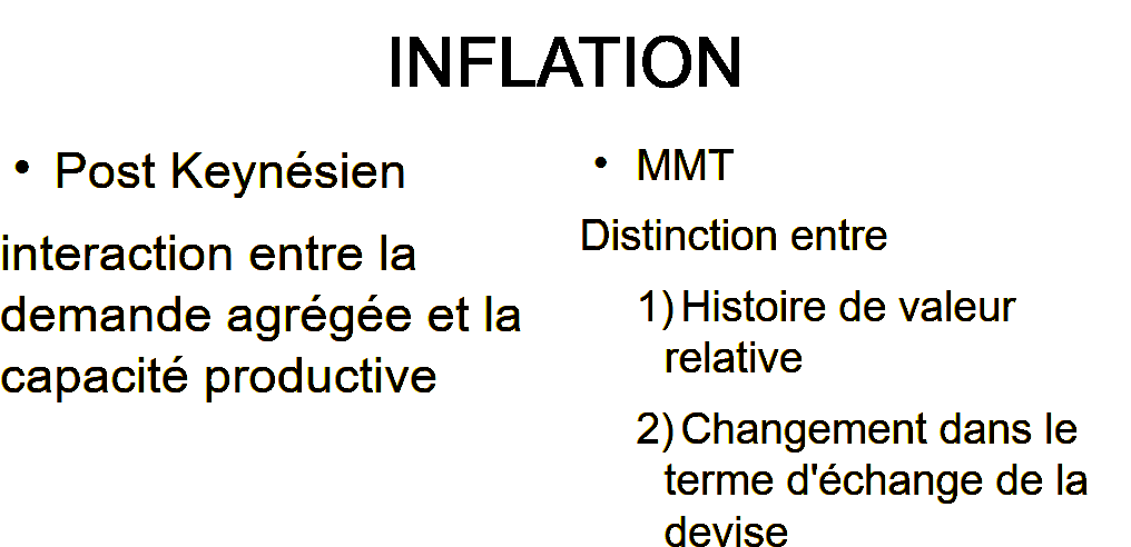 Puis, après avoir fourni cette description, la MMT suggère des propositions pour résoudre des problèmes, dans deux domaines fondamentaux. Il s’agit de la stabilité des prix, mais avant tout du chômage. Donc en fait, pour la MMT, l’élément le plus important est d’expliquer comment un pays qui maîtrise sa devise peut définir des politiques dans le but de parvenir au plein emploi, et comment il peut maintenir le plein emploi.